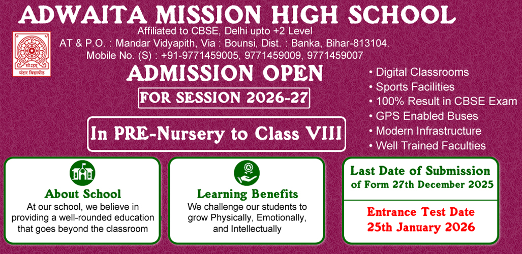 Admission is Going on From Class Pre Nursery to Class VIII for Session 2026-27